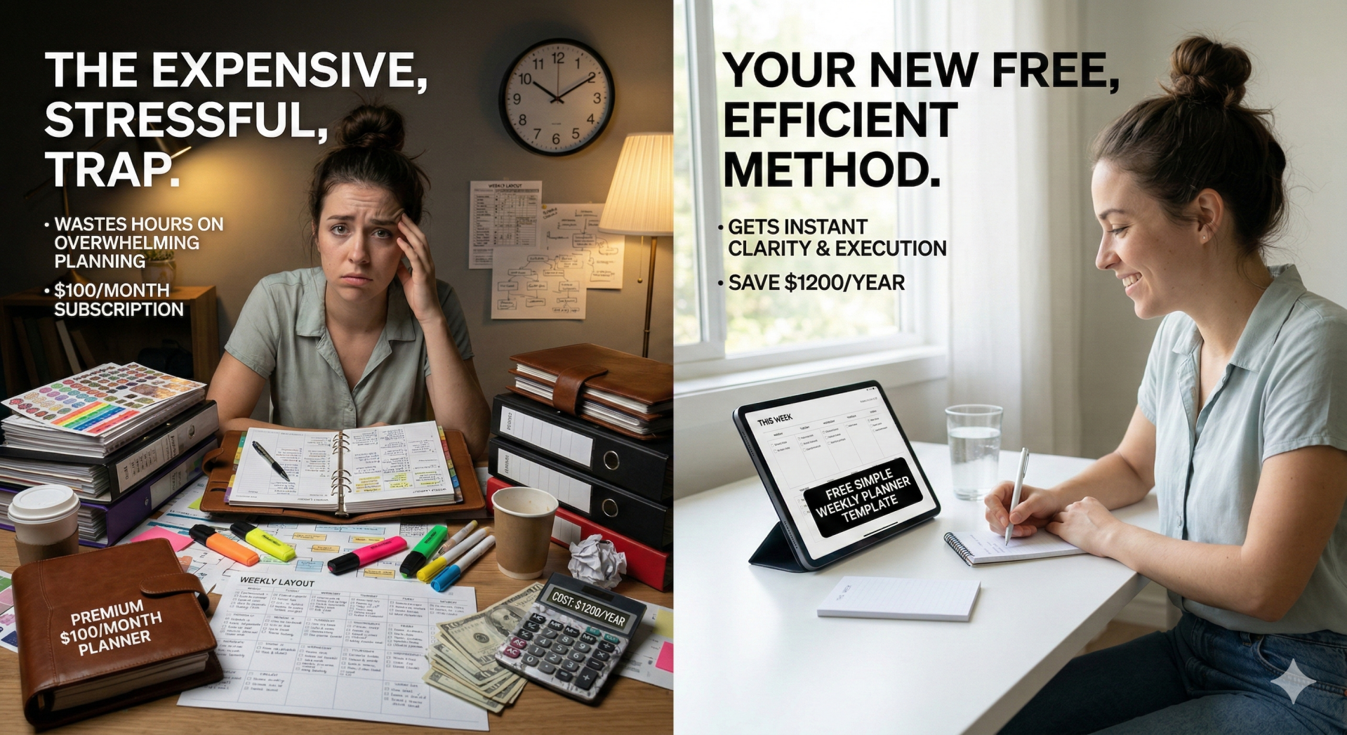 Stop wasting hours on planning and paying for expensive $100/month planner subscriptions. Get superior organization for just $5, saving you time and reducing costs.